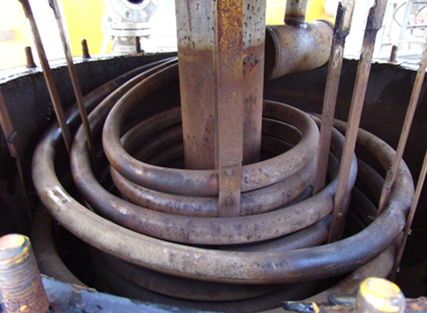 蒸發(fā)器循環(huán)冷卻水中含有大量的鹽類物質(zhì)、腐蝕產(chǎn)物和各種微生物,由于未對(duì)其進(jìn)行水處理,蒸發(fā)器運(yùn)行一段時(shí)間后水側(cè)會(huì)結(jié)有大量的鈣鎂碳酸鹽垢及藻類、微生物淤泥、粘泥等,這些污垢牢固附著于銅管內(nèi)表面,導(dǎo)致傳熱惡化、循環(huán)壓力上升、機(jī)組真空度降低,影響機(jī)組的運(yùn)行效率,造成較大的經(jīng)濟(jì)損失。